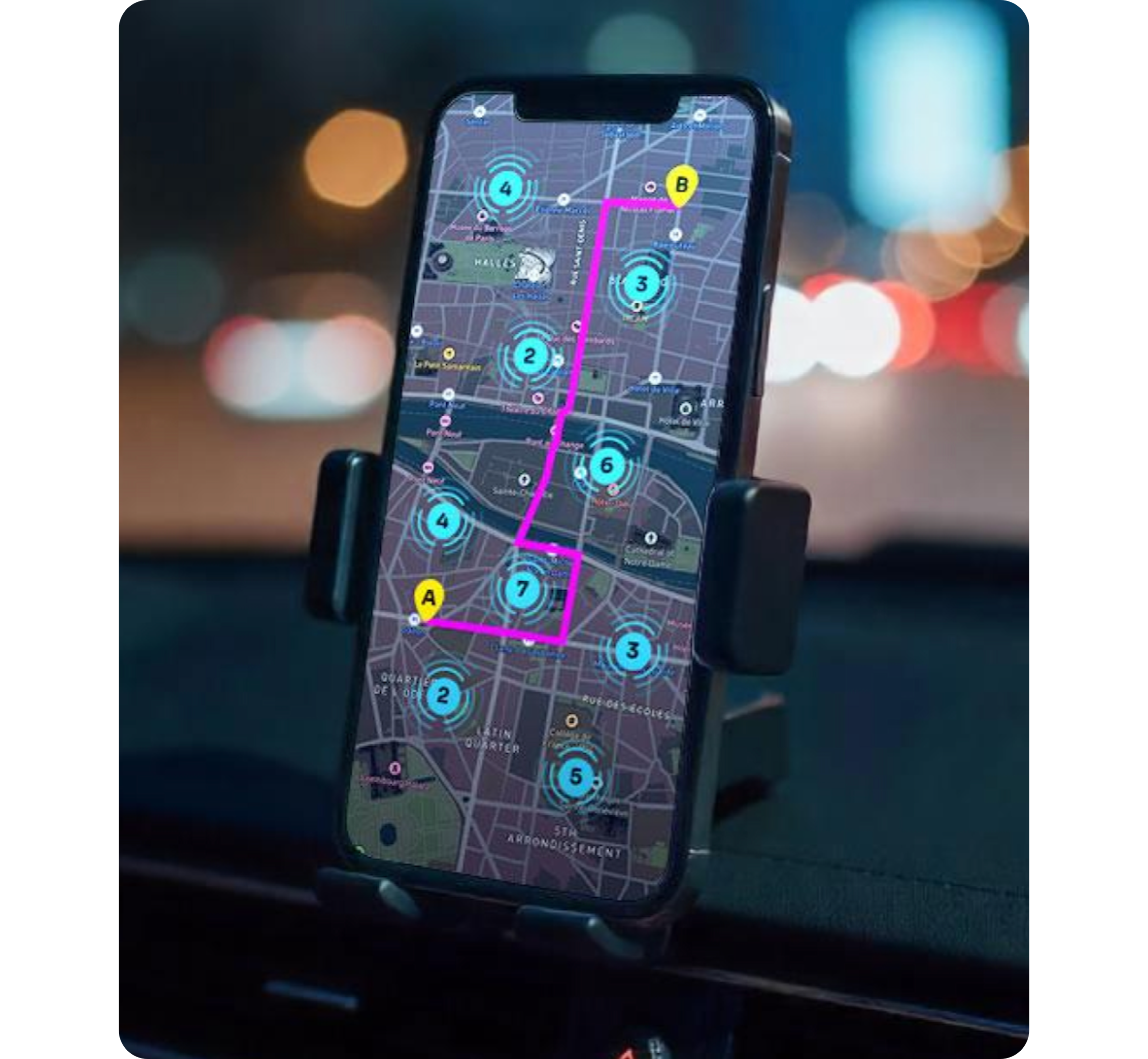 Because our insights are provided via API, they can be integrated into navigation apps in a way that balances information with distraction-reducing techniques.