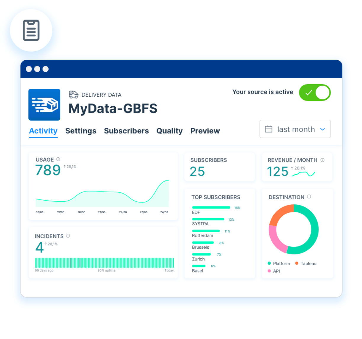 Share data for regulatory purposes or monetise your data products through Vianova Data Exchange and reach a wide smart cities ecosystem.
