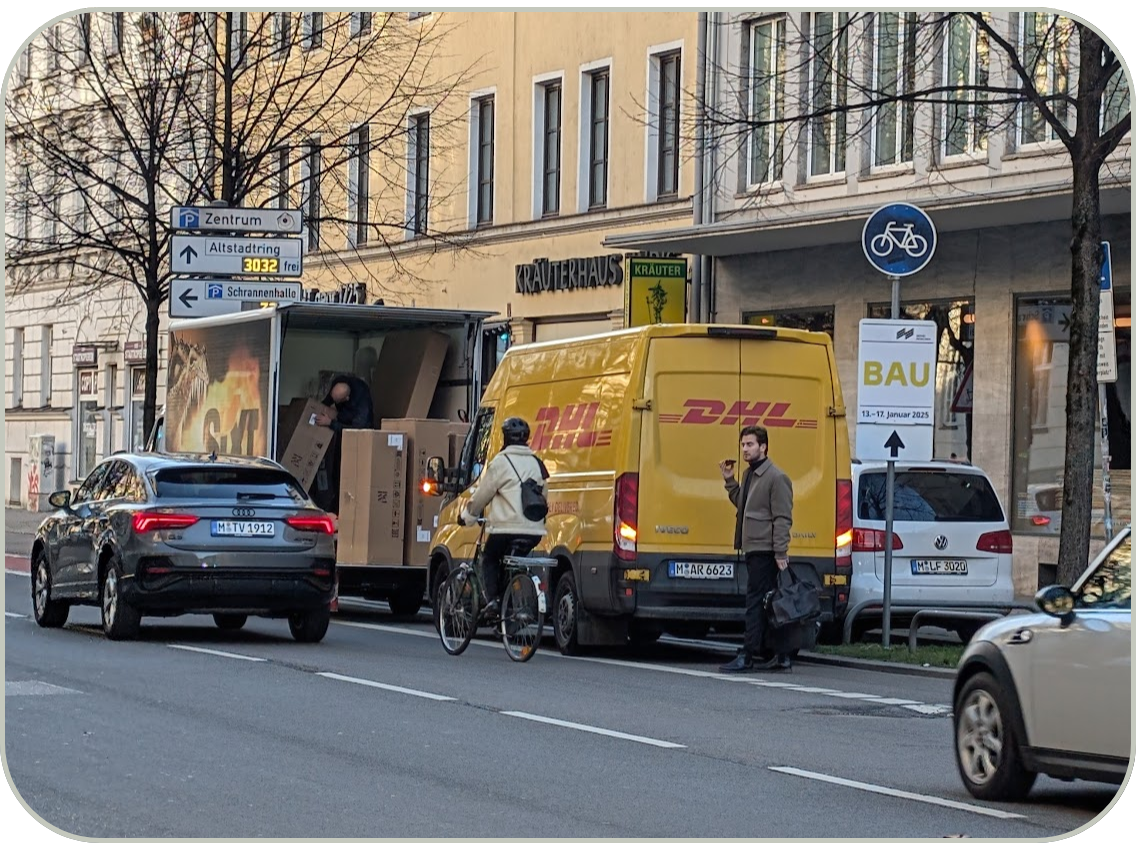 The city of Munich, like many European urban centers, faces complex challenges in balancing increasing delivery demand with limited curb space. With one of the highest GDP per capita in the EU, optimising and streamlining Munich’s commercial logistics activity is an extremely important challenge to get right. The concentration of business activity in central areas, combined with ongoing pedestrianization efforts, makes it crucial to develop informed strategies that balance the broad spectrum of affected stakeholders.