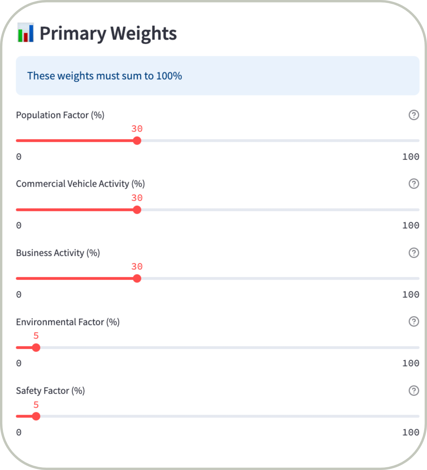 This approach combined population density, vehicle activity, and business data with environmental and safety considerations to create targeted recommendations across different urban contexts. Using a gravitational pull methodology influenced by the weights applied to respective datasets, Vianova generated a comprehensive and ranked list of potential additional loading zones in the city.