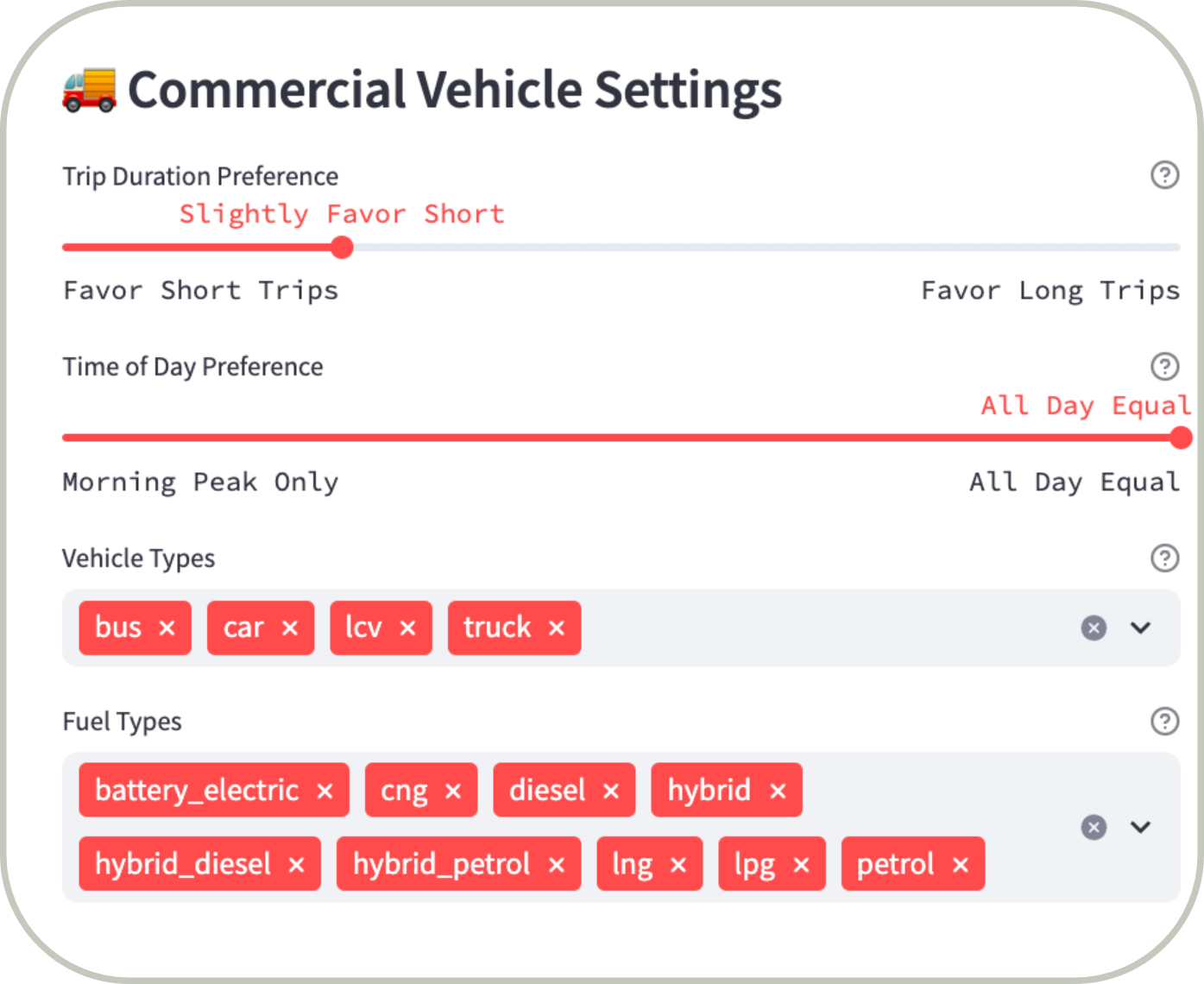 The solution evolved through multiple iterations, adapting to the unique characteristics of each district. While central areas required careful balance between intense commercial delivery demand, population density and logistics activity, residential zones like Harthof demanded different approaches that shifted weights towards the different underlying parameters influencing delivery demand. Through a dynamic interface, the flexible methodology allowed for customization based on temporal patterns, stop durations, and vehicle types specific to each area.