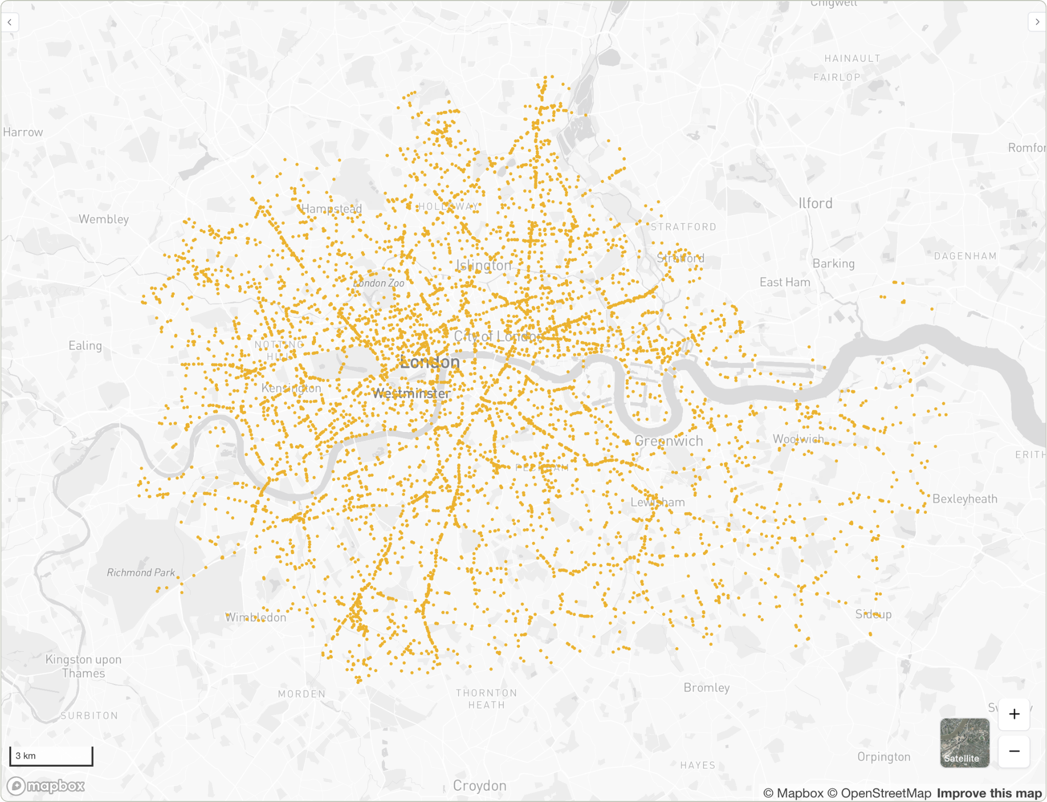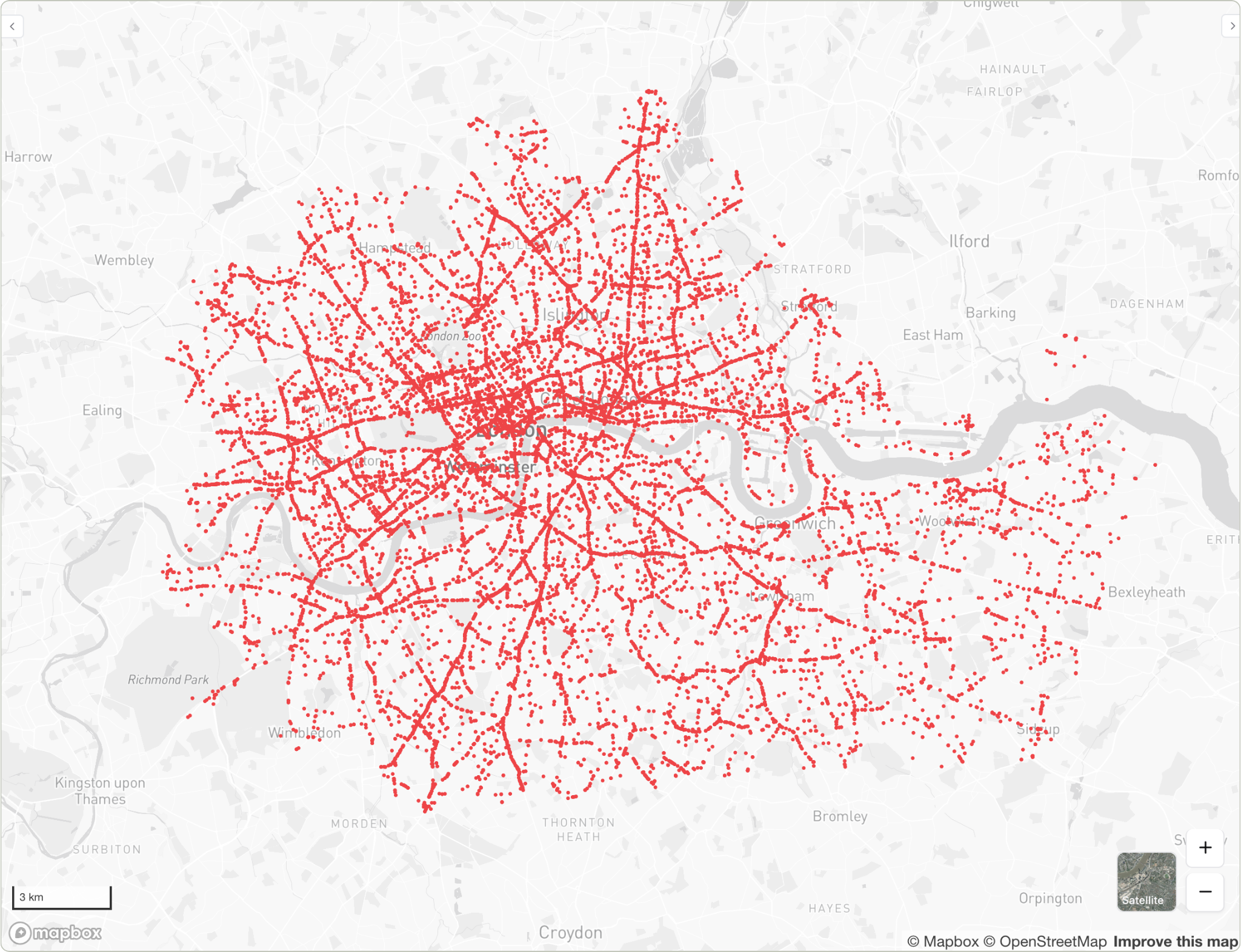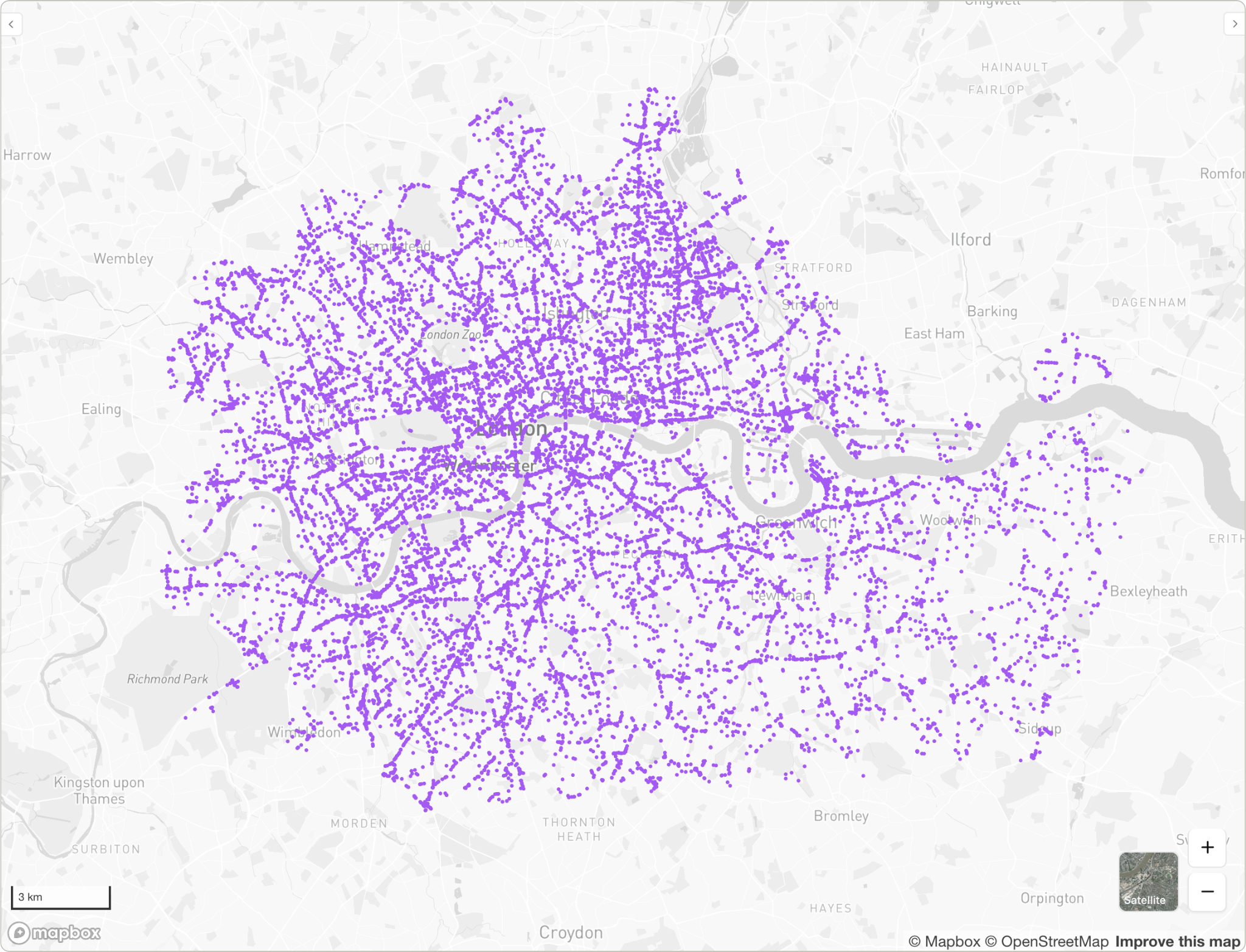 Can the use of connected vehicle data match or exceed the quality of a historic collision-based approach? We’ve run an analysis on both collision data and the types of near miss events in an area of central London. To begin, we built a model which incorporated 5 years of historic collision data, a three month period of harsh braking data, and then a 9 month “validation” dataset of collisions. The objective would be to simulate the process of “predicting” collisions by identifying how many of the data points in the validation dataset could be identified using the historic datasets of collisions and harsh braking.