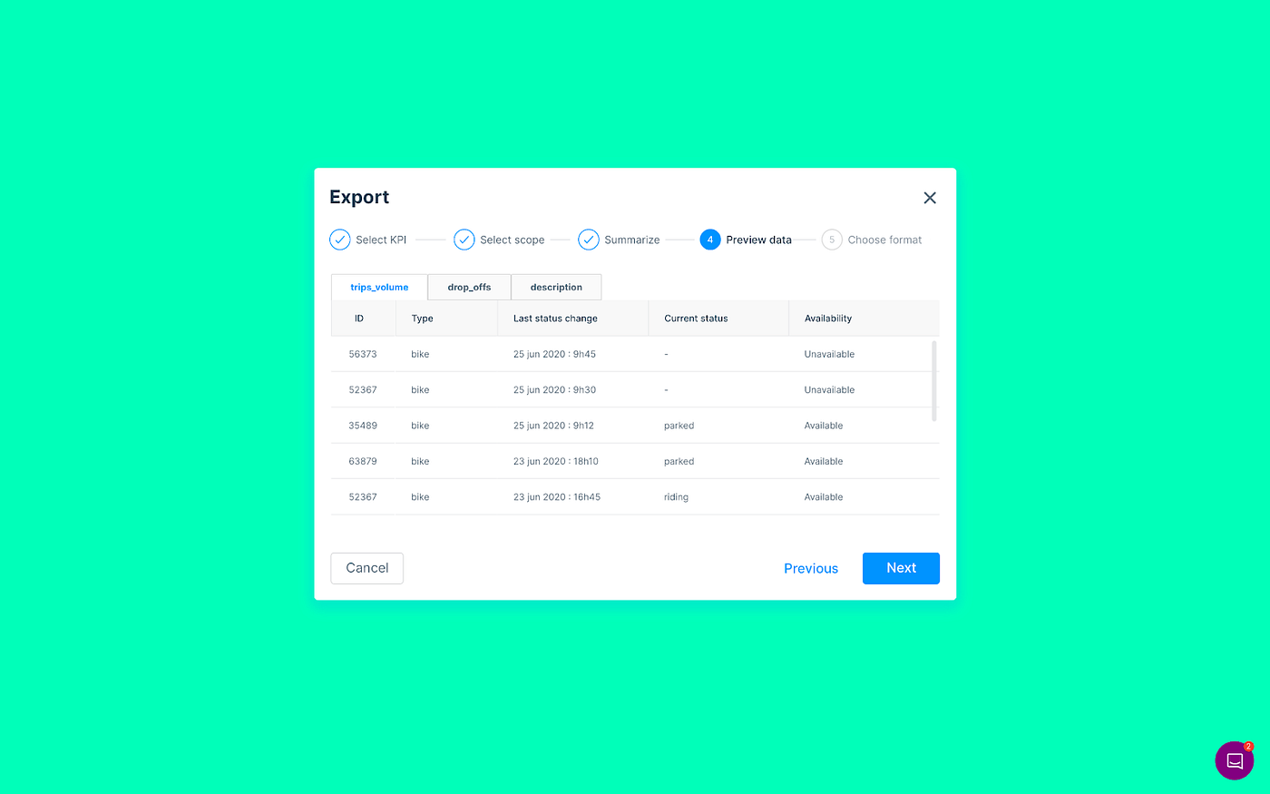 - Have access to all their data aggregated on behalf of the city (aggregated under the licence of the city) through the Export function (.csv, .geoJSON)